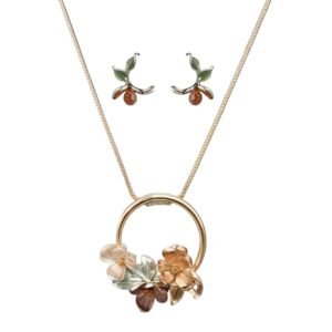 The Kanhaverse Blossom Circle Pendant Necklace is a masterpiece of refined craftsmanship and nature-inspired beauty. Suspended from a delicate gold-toned chain, the circular pendant blooms with intricately sculpted flowers in soft pastel tones of rose gold, ivory, and lilac. Each petal is delicately finished to evoke a sense of harmony and sophistication. Perfect for romantic evenings, festive celebrations, or elegant daytime looks, this necklace radiates charm and femininity.