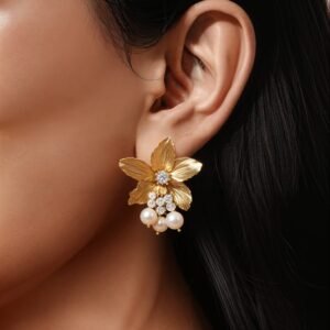 Graceful and timeless — these floral-inspired earrings combine elegance and charm with a golden finish and delicate pearl drops.