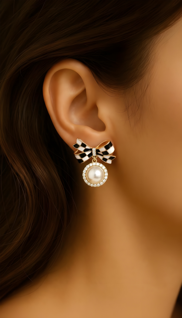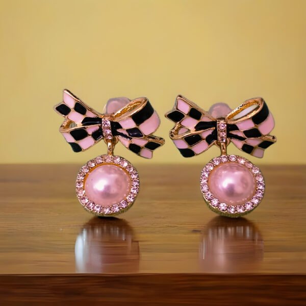 Elegant bow-shaped stud earrings with soft pink enamel detailing and a pearl accent. Lightweight, stylish, and perfect for daily wear, parties, and gifting.
